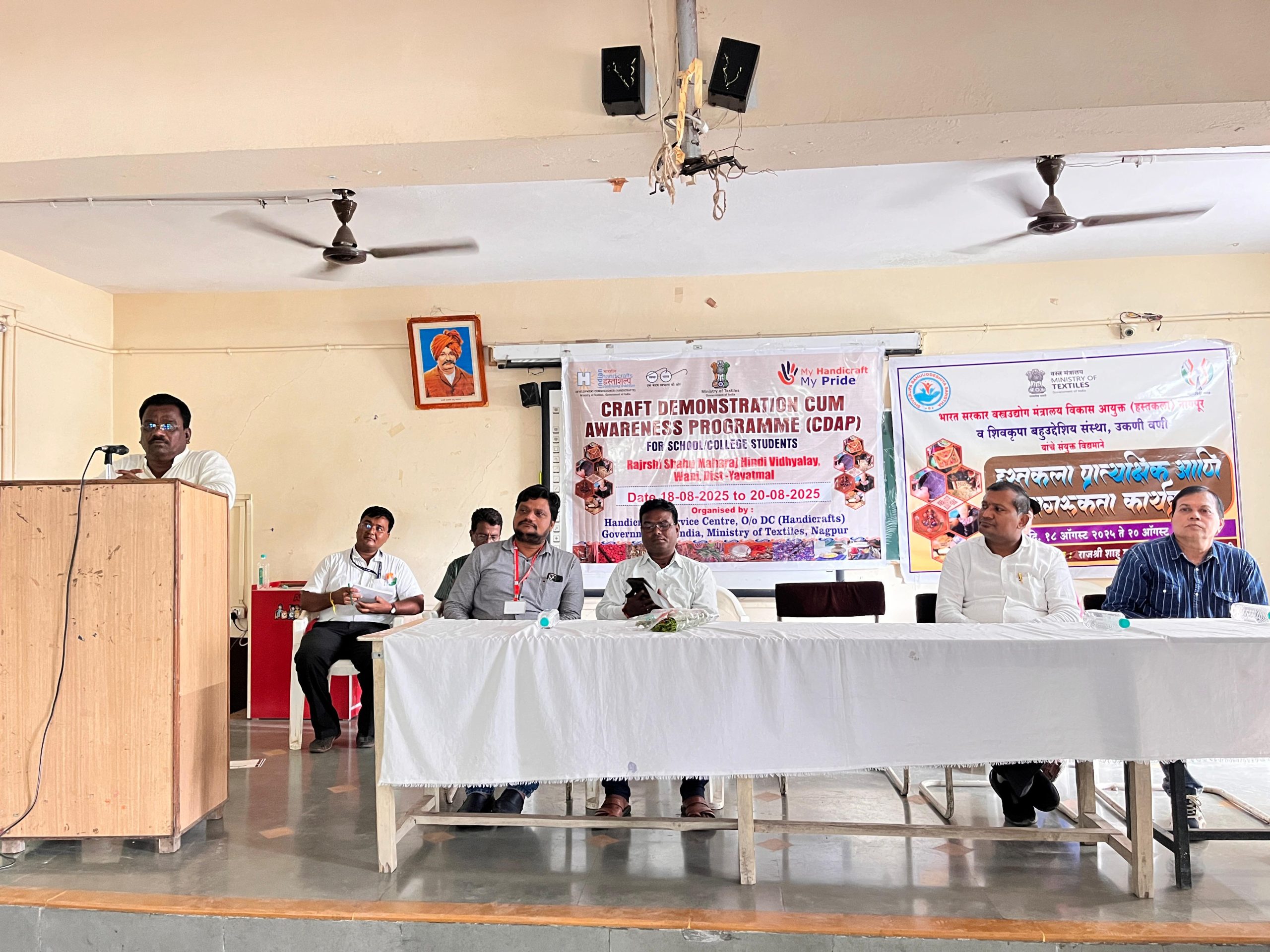 भारत सरकार वस्त्र उद्योग मंत्रालय विकास आयुक्त (हस्तकला)नागपूर व शिवकृपा बहुउद्देशीय संस्था उकणी वणी यांच्या माध्यमातून दिनांक १८/०८/२०२५ ते २०/०८/२०२५ या कालावधीत राजश्री शाहू महाराज हिंदी विद्यालय वणी येथे तीन दिवसीय कार्यशाळेचे आयोजन करण्यात आले.या कार्यशाळेचा समारोप कार्यक्रम वणी पब्लिक स्कूल वणी येथील सभागृहात आयोजित करण्यात आला. या समारोपिय कार्यक्रमाचे अध्यक्ष मा.श्री संजय रामचंद्र खाडे अध्यक्ष शिवकृपा बहुउद्देशीय संस्था उकणी वणी होते.प्रमुख अतिथी मा. श्री. अभय पारखी मुख्याध्यापक राजश्री शाहू महाराज हिंदी विद्यालय वणी, मा.राकेश देशपांडे प्रिन्सिपल वणी पब्लिक स्कूल वणी यांच्या प्रमुख मार्गदर्शनात संपन्न झाला.