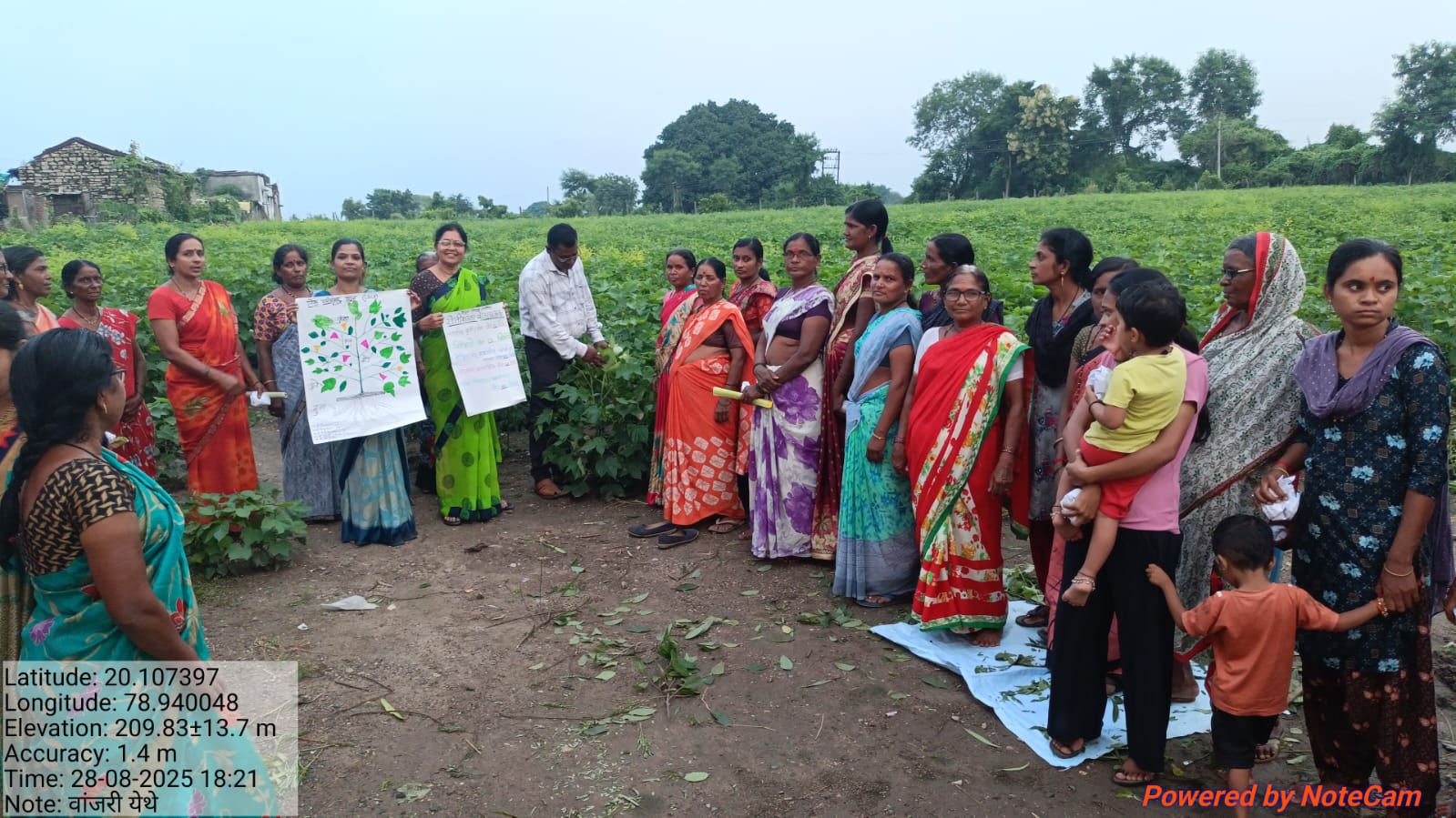 आज दिनांक २८/०८/२०२५ रोज गुरुवारला मौजा-वांजरी येथे सचिन झिले यांचे शेतामध्ये नानाजी देशमुख कृषि संजीवनी प्रकल्प टप्पा -२ अंतर्गत कापूस पिकाची महिला शेतकर्यांची शेतीशाळा वांजरी गावच्या सरपंच अरुणाताई जेणेकार यांचे प्रमुख उपस्थितीत घेण्यात आली.या शेतीशाळे करीता महिला शेतकर्यांनी उत्स्फुर्त प्रतीसाद दिला.तसेच पुरुष शेतकर्यांनी सुद्धा उपस्थिती दर्शविली. उपस्थित १०-१० शेतकर्यांचे गट तयार करून मागिल शेती शाळेमधील निरीक्षणाच्या तुलनेत व आताच्या निरीक्षणात झाडाच्या वाढीमध्ये तसेच किडी व रोग यात काय फरक दिसुन येतो हे सांगण्यासाठी शेतामधिल कापसाच्या झाडांची निरीक्षणे करून झाडांची उंची ,त्याचा घेर, झाडांवरील फांद्यांची संख्या, फुलांची संख्या,बोंडांची संख्या,मोजण्यात आली.तसेच झाडावर असलेल्या मित्र किडींची ओळख करुन देण्यात आली.पानांवरील रस शोषण करणाऱ्या किडी,बोंड अळ्या शोधुन त्यांच्या जिवन क्रमाबाबत तसेच त्यांच्यापासून होणाऱ्या नुकसानी बाबत माहिती देण्यात आली.व त्यांच्या नियंत्रणाच्या उपाय योजना मध्ये जसे- एकात्मिक किड नियंत्रण, रासायनिक किड नियंत्रण करण्याच्या उपाय योजना सांगण्यात आल्या.नैसर्गिक/जैविक नियंत्रण कसे फायद्याचे आहे, त्याकरिता दशपर्णी अर्क कसा तयार करावा, फवारणी करण्यासाठी त्यांचे प्रमाण किती घ्यावे,अर्काचा वापर कसा करावा,अर्का करीता वापरलेल्या दहा झाडांच्या पानांचा पिकाच्या वाढीसाठी व किडींवर होणारा परिणाम इत्यादी बाबत प्रत्यक्ष शेतावर प्रात्यक्षिक करून माहिती देण्यात आली.तसेच फवारणी करताना घ्यावयाच्या काळजी बाबत व औषधांच्य हाताळणी बाबत प्रात्यक्षिक करून दाखविण्यात आले.या शेती शाळेकरीता नैसर्गिक शेती अभियानाच्या कृषि सखी सौ.चेतनाताई काकडे व रत्नमालाताई सपाट यांनी दशपर्णी अर्काचे प्राथक्षिक करुन दाखविले तसेच ना.दे.कृ.सं.प्र.च्या कृषि ताई खुशबू तेलतुंबडे यांनी शेती शाळेकरीता मोलाचे योगदान दिले.तसेच सहाय्यक कृषी अधिकारी बि.व्ही.वनकर , सहाय्यक कृषी अधिकारी राहुल मेश्राम यांनी शेतकऱ्यांना
