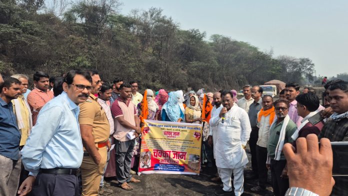 उकणी प्रकल्पग्रस्तांचा बेलोरा चेकपोस्टवर चक्काजाम